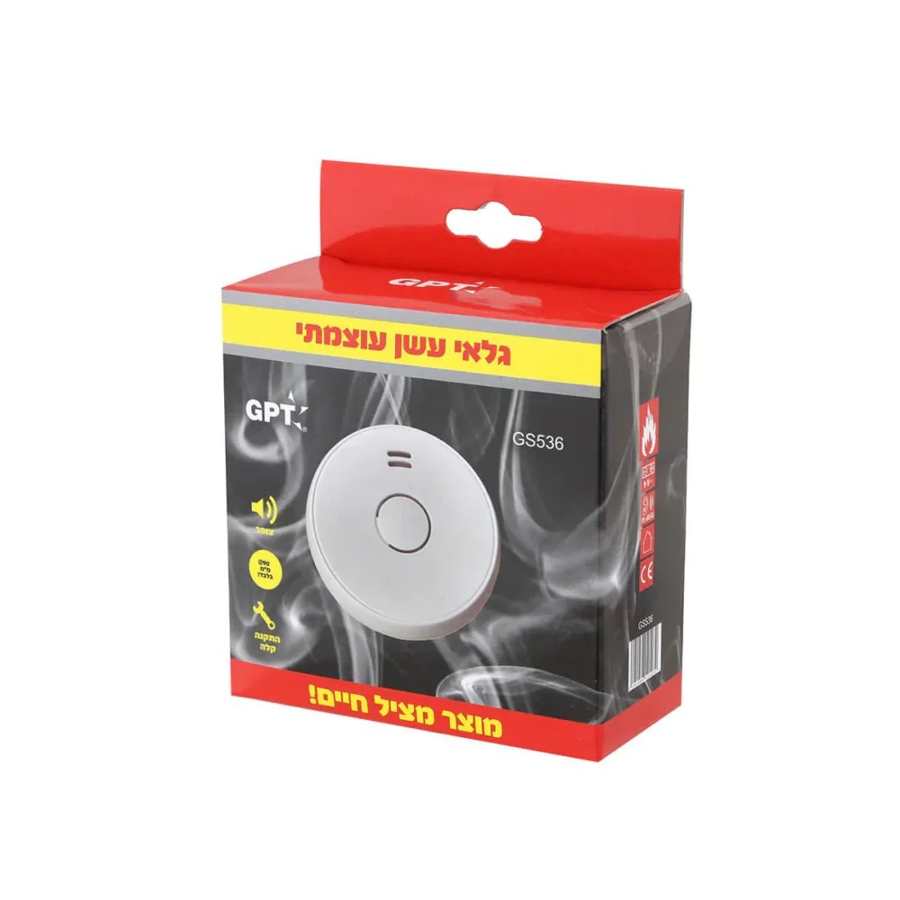גלאי עשן עצמאי דגם GPT V9 עם התקנה פשוטה לבית ולמשרד ללא צורך בחשמלאי
